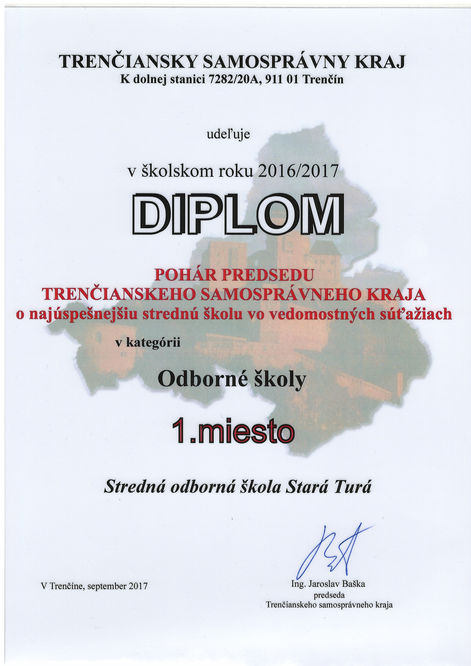 Stredná odborná škola v Starej Turej získala za školský rok 2016-2017 prvé miesto medzi strednými odbornými školami